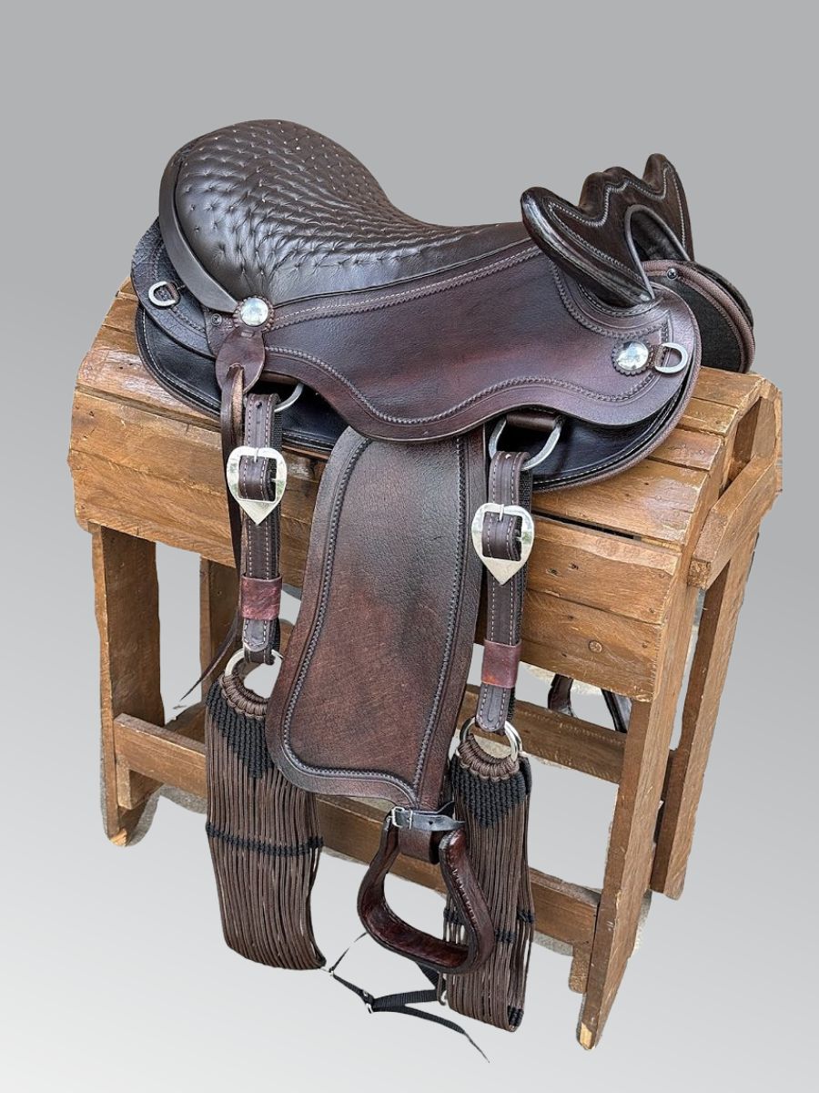 Sela Top10 Entalhada de Cabeça, completa, fabricada em legítimo couro de búfalo, criteriosamente selecionado, tratado com óleo de mocotó, proporcionando maior resistência do couro e prolongando a vida útil do produto. Composta de argolas e fivelas em aço inox, de altíssima qualidade, livre de ferrugens. Armação altamente resistente com estrutura de fibra de vidro. Assento em couro nobuck acolchoado e suadores de feltro. Detalhes entalhados artesanalmente. Cabeça modelo mineira. Produto com fino acabamento, prático, resistente, bonito e de fácil fixação no animal. Produto versátil, podendo ser utilizado na maioria das raças.