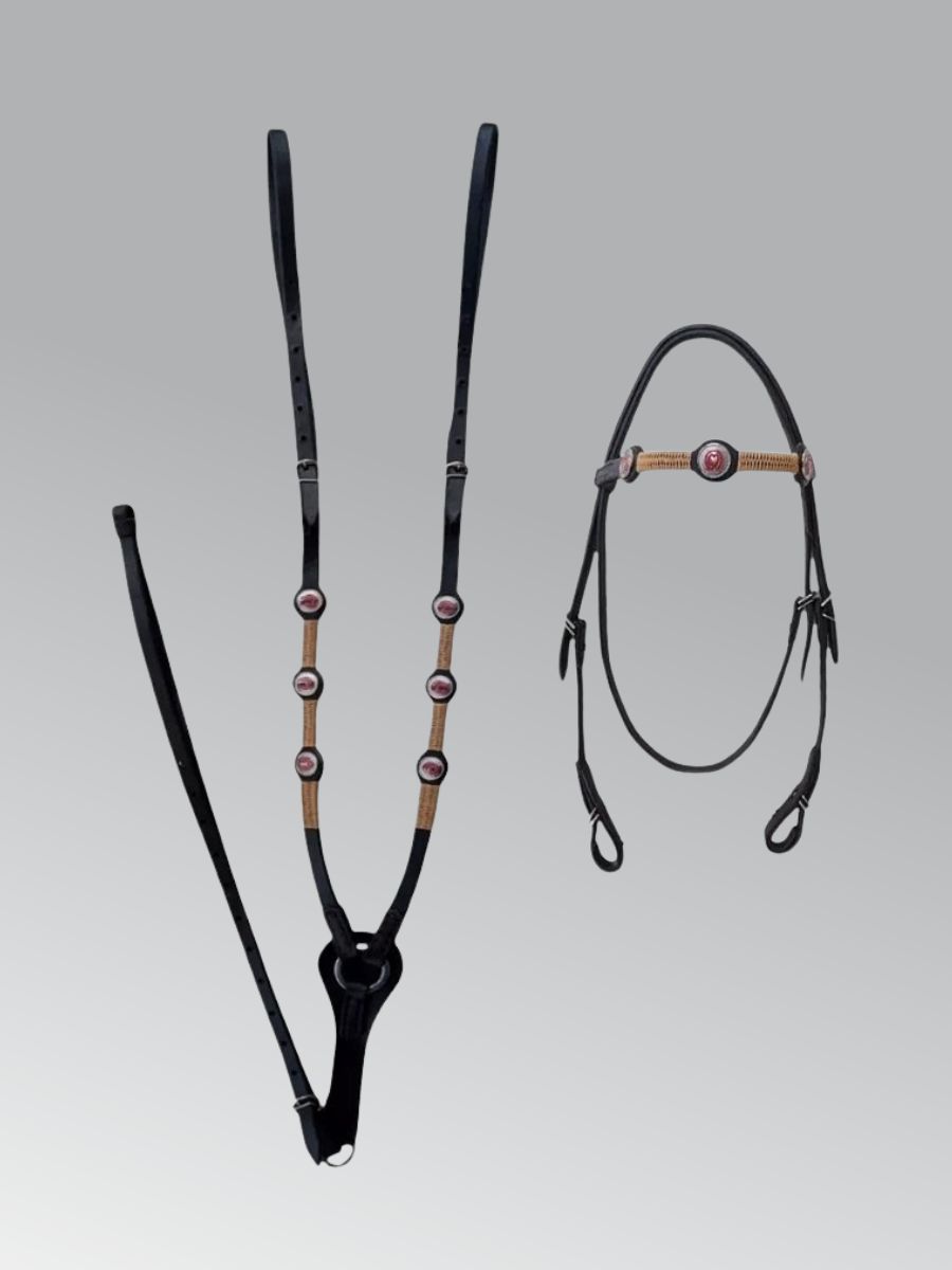 Conjunto de cabeçada e peitoral fabricados artesanalmente em couro legítimo de alta qualidade. Resistentes, duráveis e com acabamento impecável, são ideais tanto para o dia a dia no campo quanto para apresentações e cavalgadas.