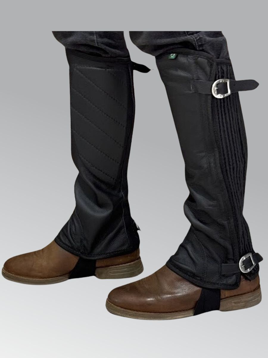 Perneira de Couro Vaqueta com Fivelas - Preta