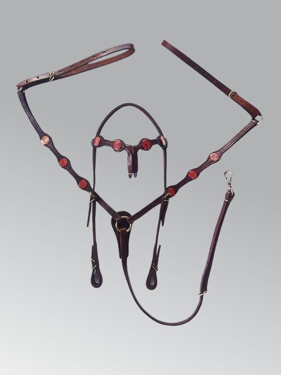 Conjunto de cabeçada e peitoral fabricados artesanalmente em couro legítimo de alta qualidade. Resistentes, duráveis e com acabamento impecável, são ideais tanto para o dia a dia no campo quanto para apresentações e cavalgadas.