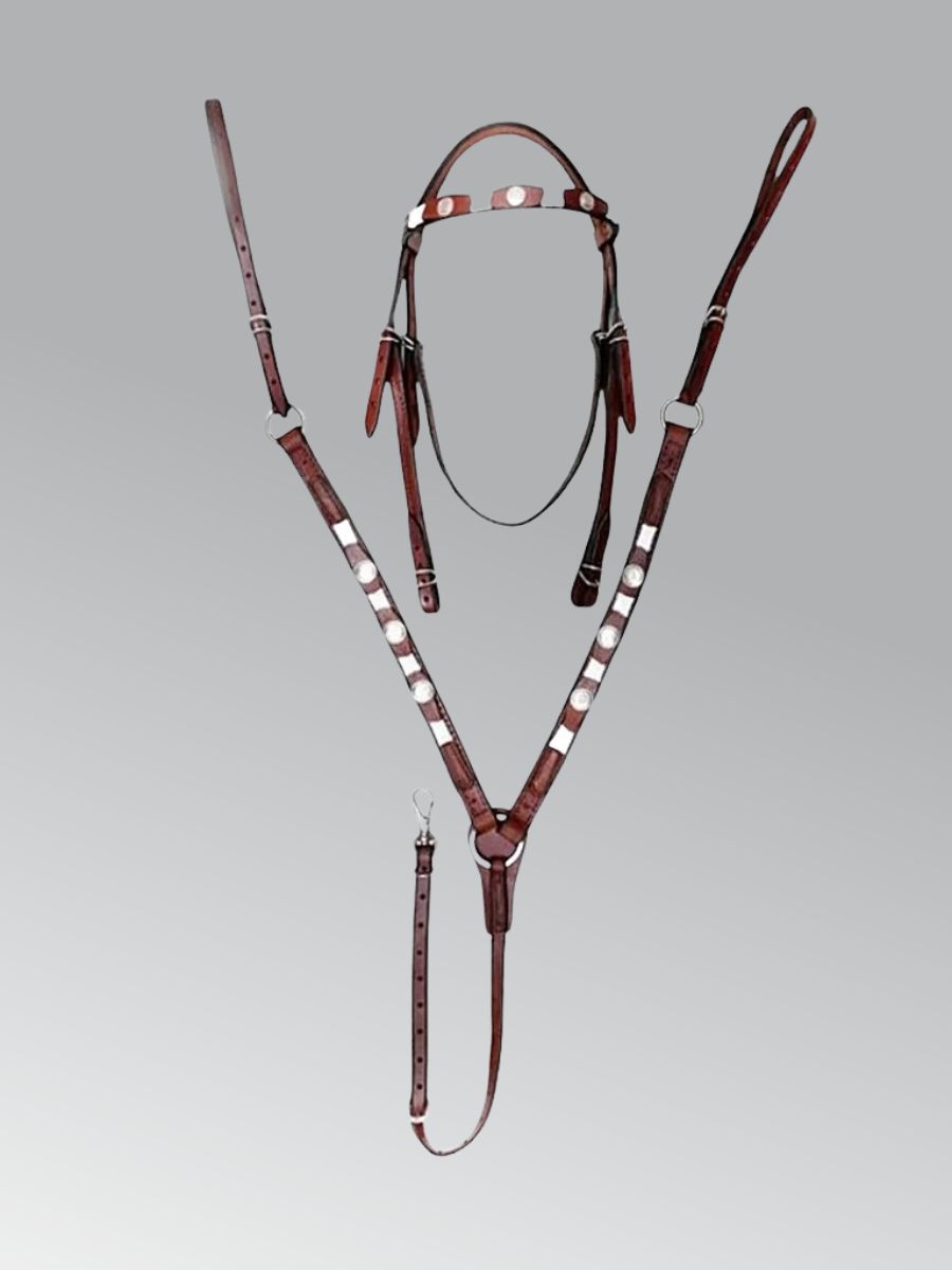 Conjunto de cabeçada e peitoral fabricados artesanalmente em couro legítimo de alta qualidade. Resistentes, duráveis e com acabamento impecável, são ideais tanto para o dia a dia no campo quanto para apresentações e cavalgadas.