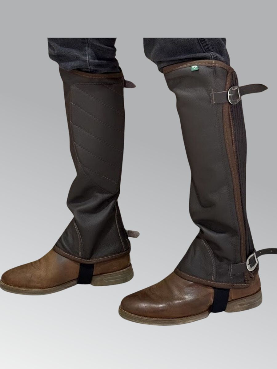 Perneira de Couro Vaqueta com Fivelas - Marrom