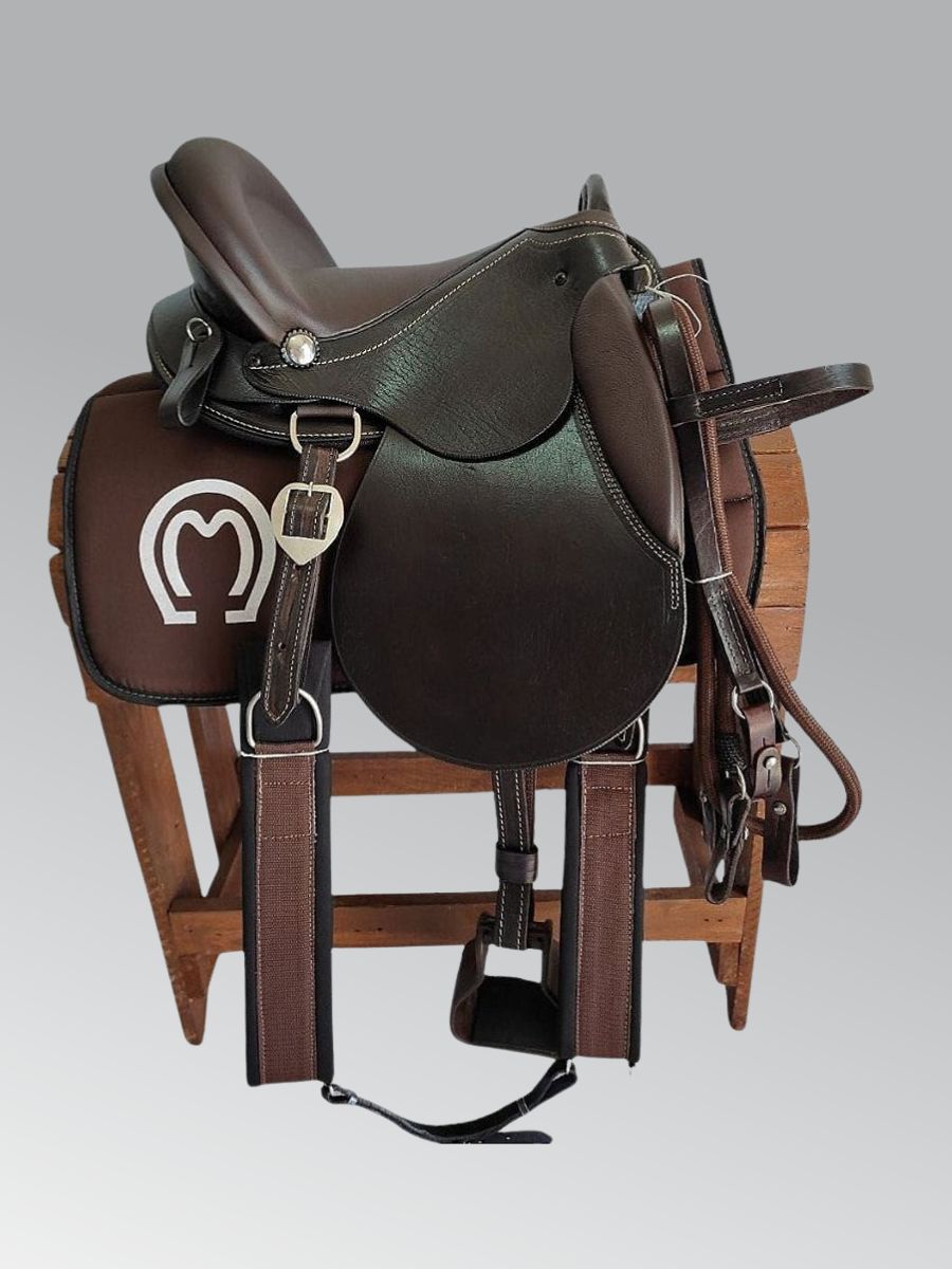 Toda a sela e os arreamentos são em couro legítimo tratado e hidratado para ter uma vida útil grande.