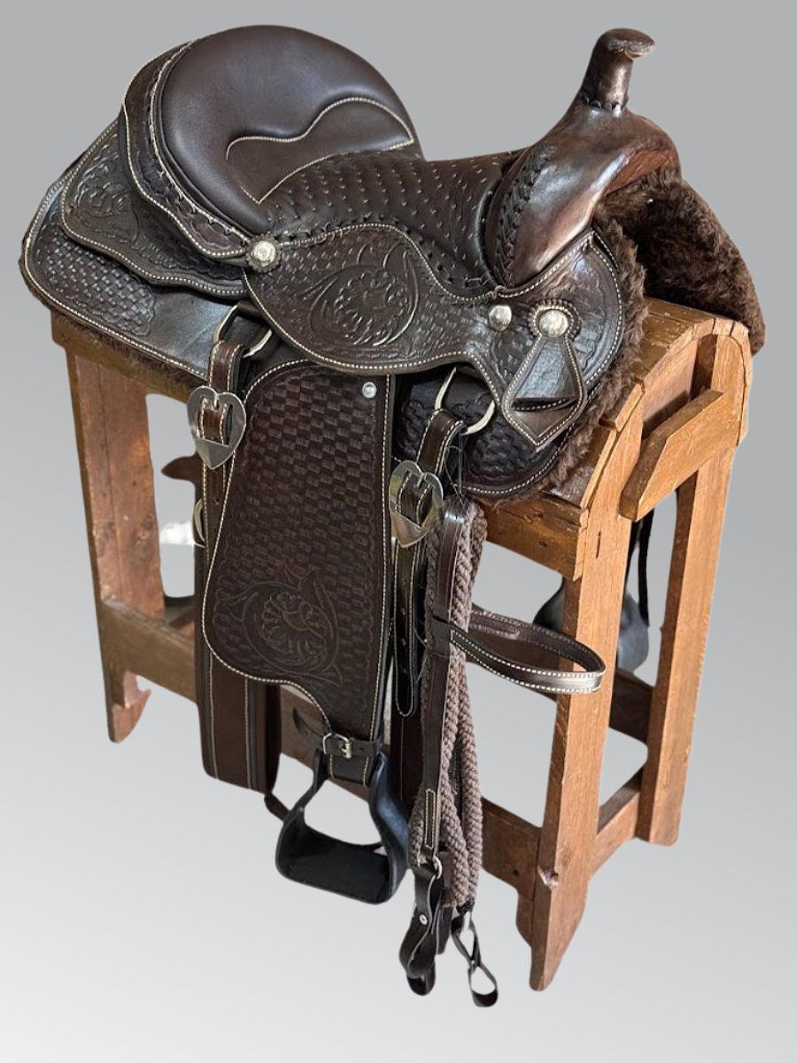 Ideal para trabalho no campo ou cavalgadas longas, possui armação resistente em fibra, fivelas e ferragens em aço inoxidável, além de um acabamento artesanal impecável.