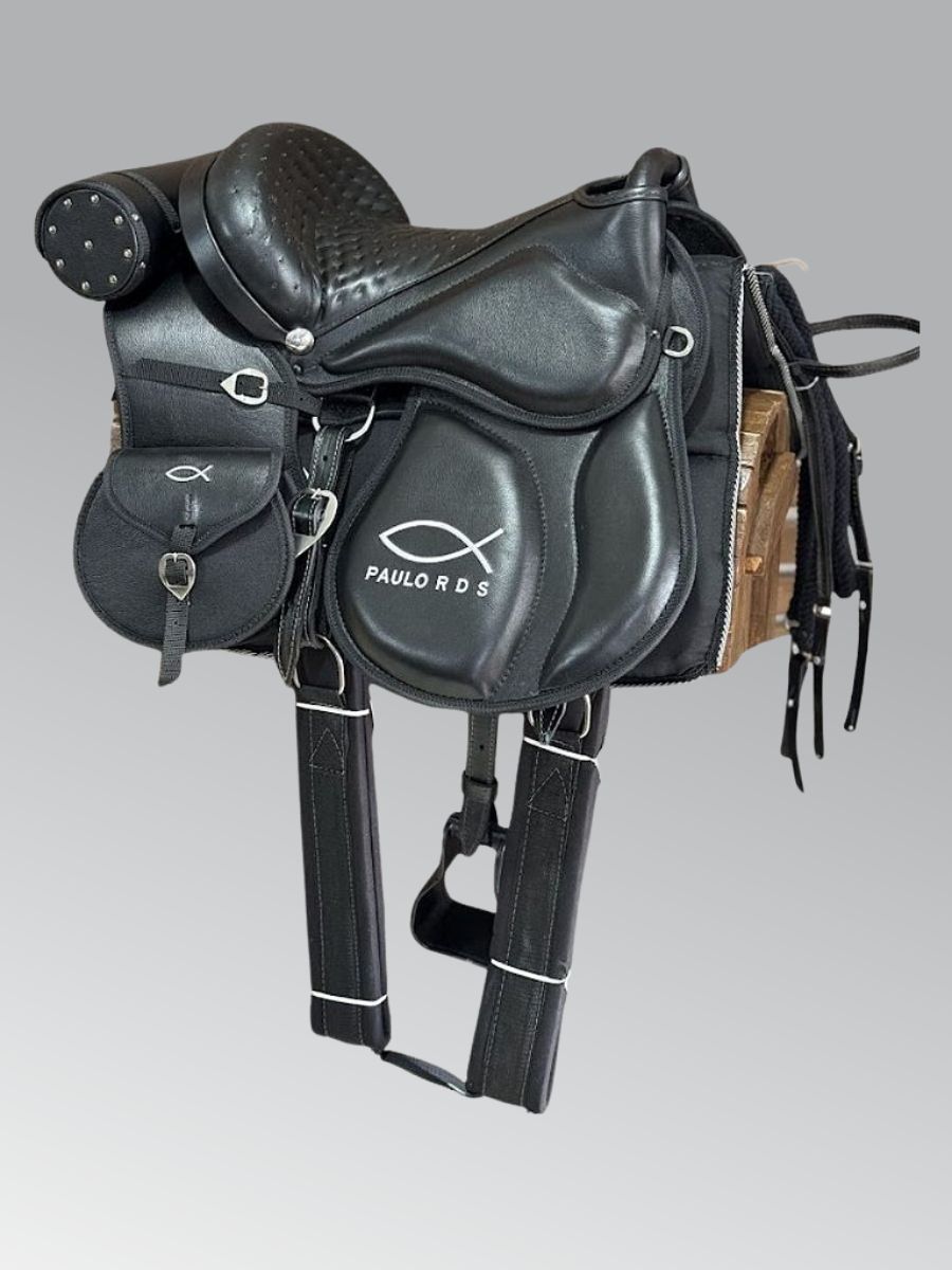 Pensando em viajar a cavalo ou passear em longas cavalgadas, com o kit de alforges dessa sela vai te dar mais liberdade para levar itens que você desejar. Além disso, o alforge é removível.